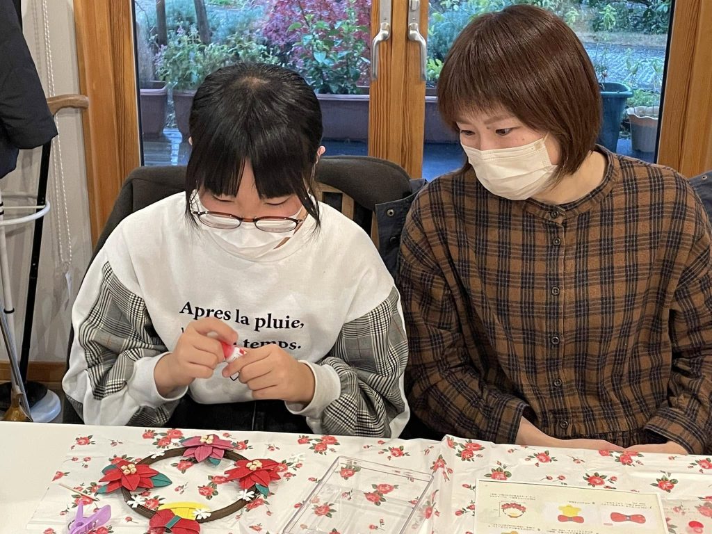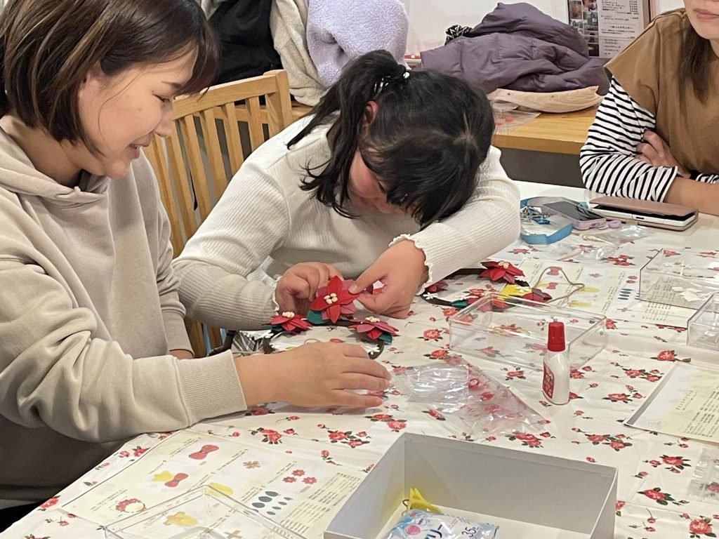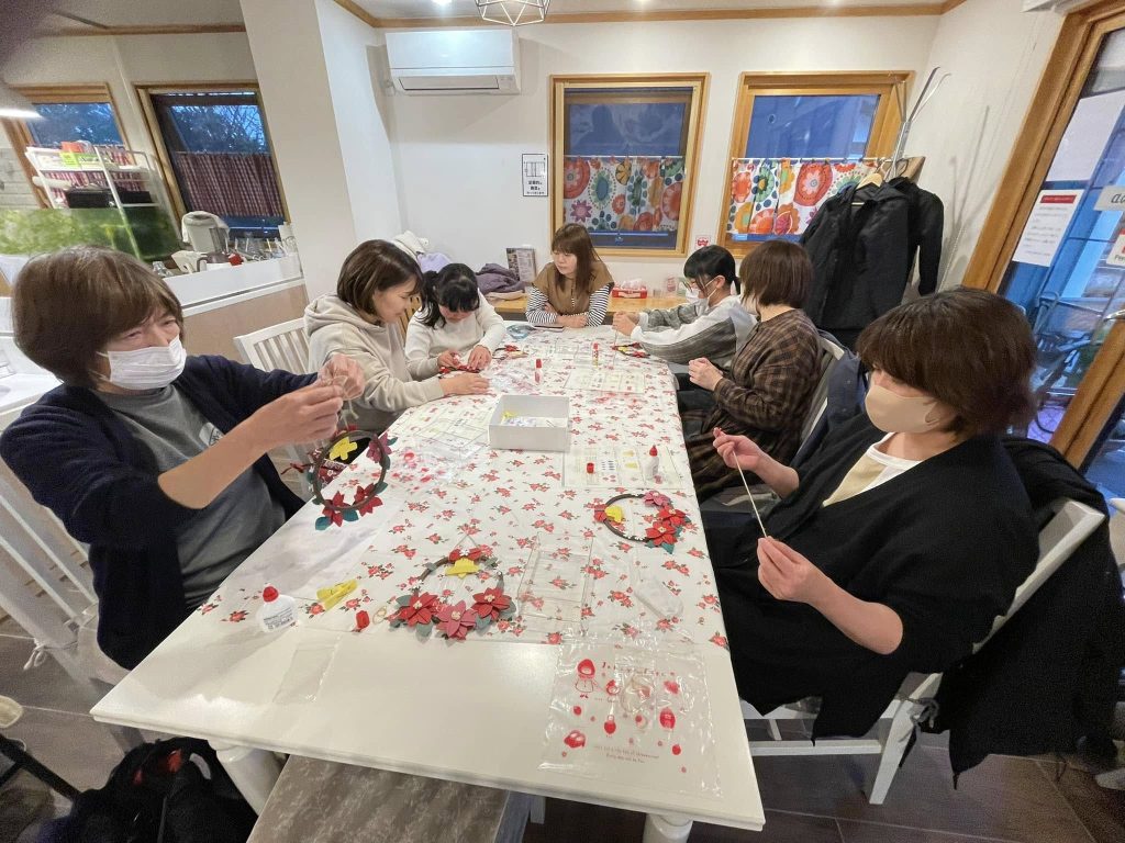 参加者同士が教え合ったり、完成したリースを見せ合ったりする中で、自然と笑顔が広がり、温かい交流の場となっていました( ◠‿◠ )