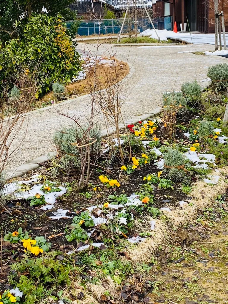ものがたりの街の地元の方が大勢集まってくださり、草花の雪囲いや剪定の冬支度が完了できました。