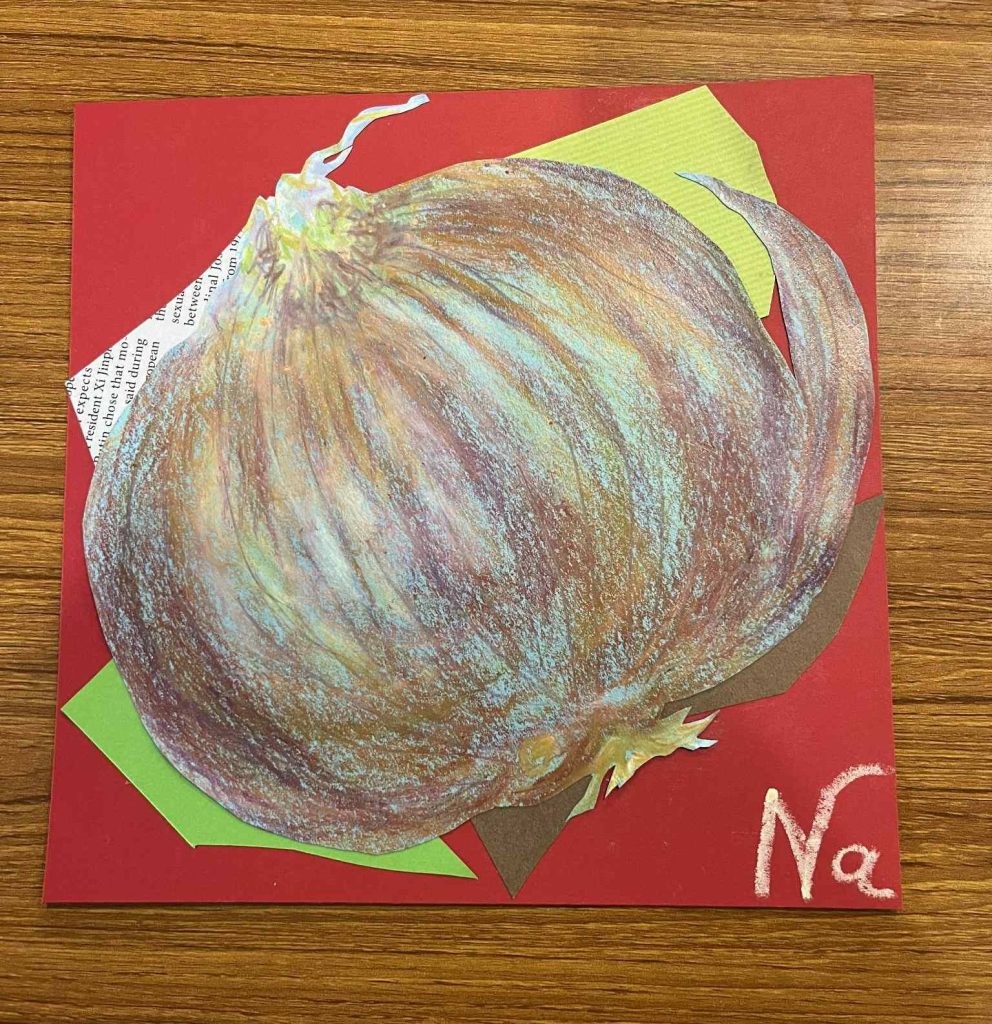 大きくて、ダイナミックで、存在感のある玉ねぎ(臨床美術)