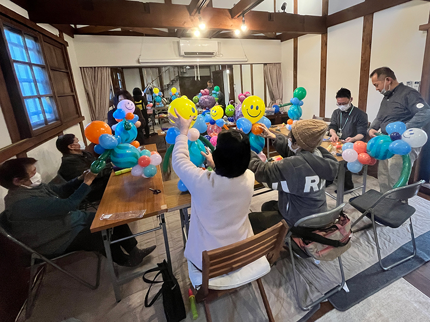 今回は、バルーンアートのプロである、ハッピーアンドバーニーの高橋さんを講師にお招きし、カラフルな風船を使った作品づくりに挑戦しました。