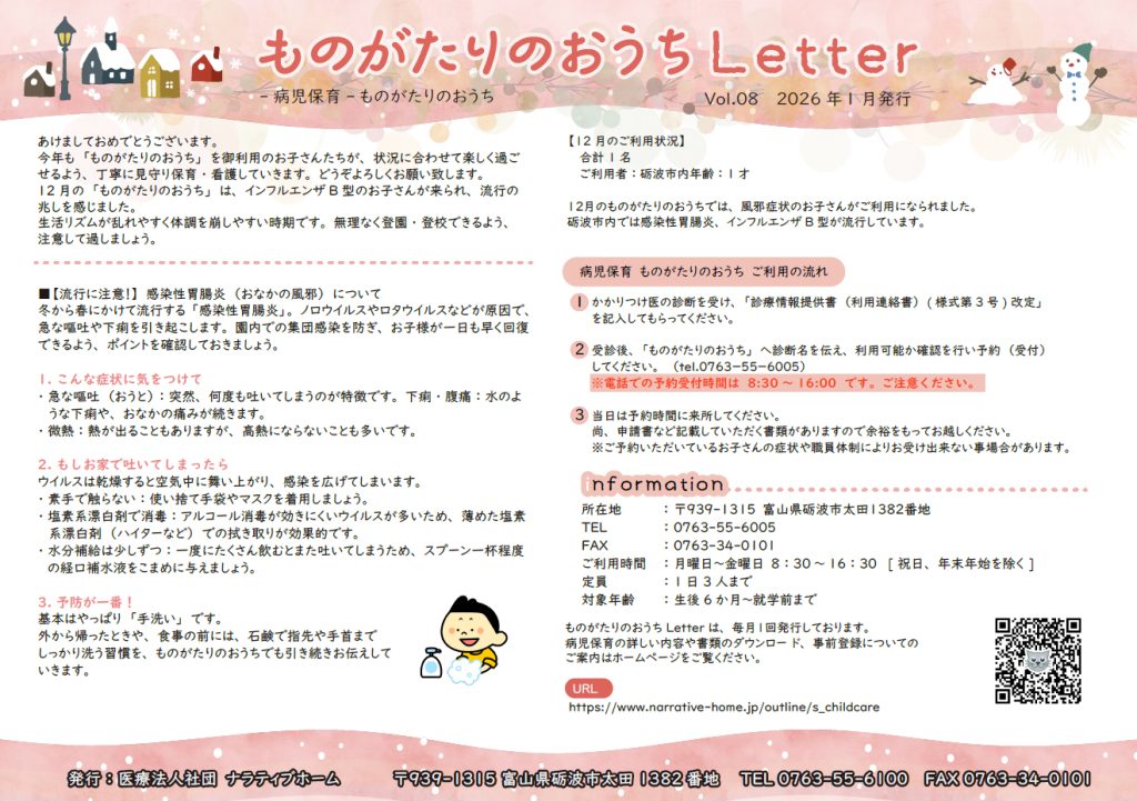 (月一回、病児保育からお便りを発行しています。)