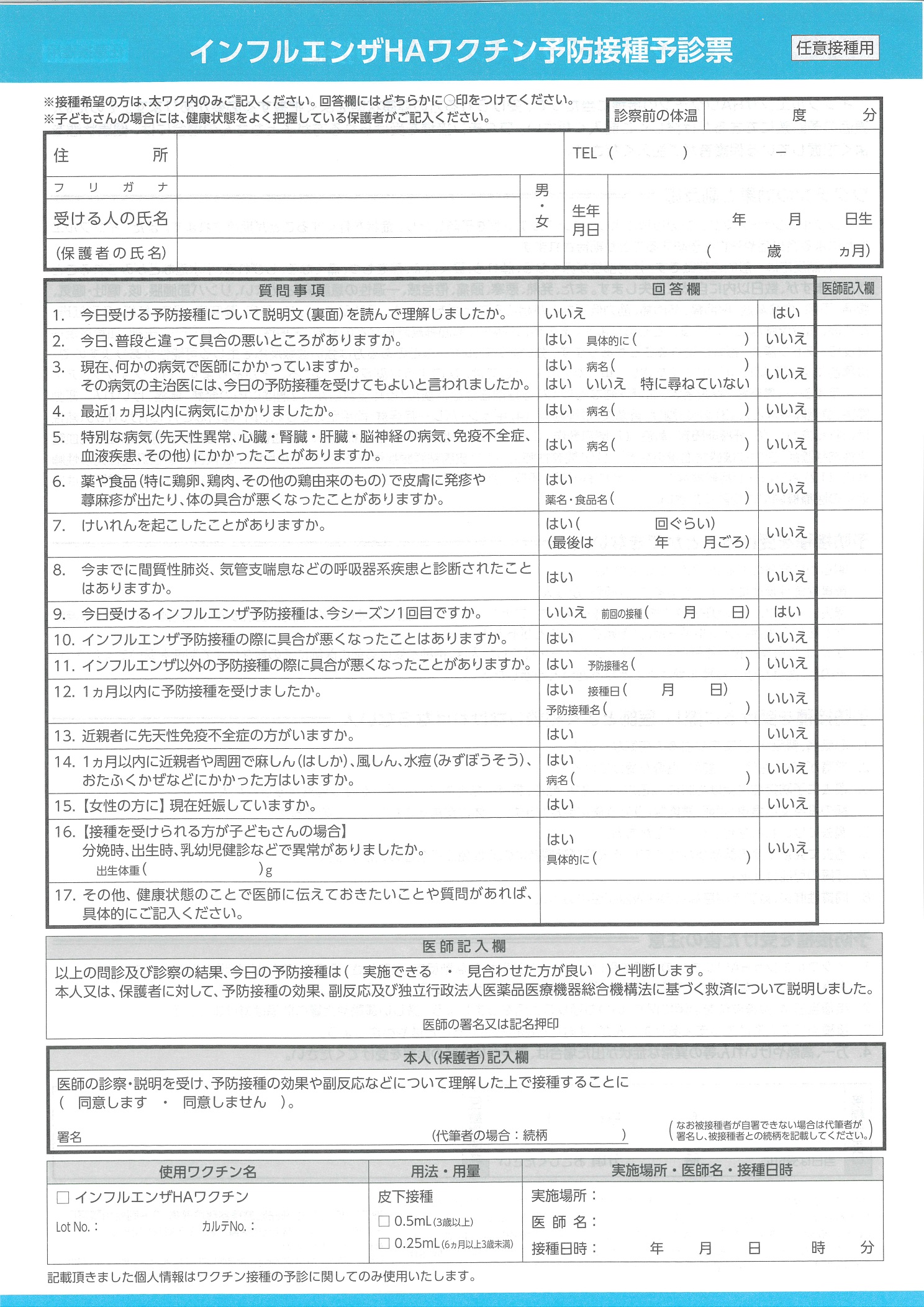 ※スムーズな受付のため、事前に予診票をご記入のうえお越しください。