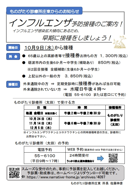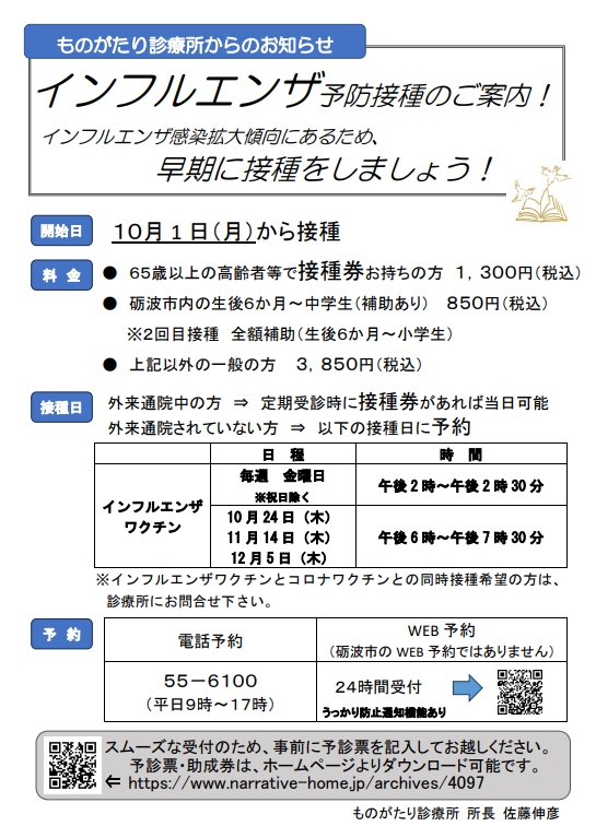 令和6年秋 インフルエンザ予防接種のご案内(予診票・助成券ダウンロードできます。)