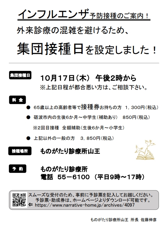 ものがたり診療所(太田)では、夜間接種日を設けてあります。