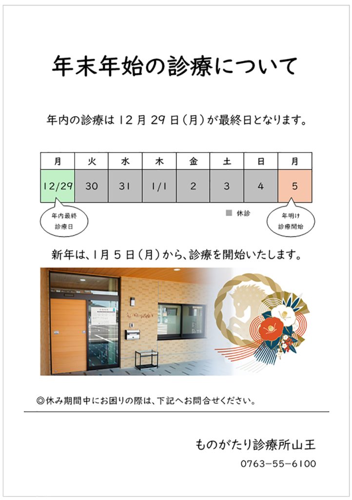 年末年始の診療日 についてお知らせいたします。