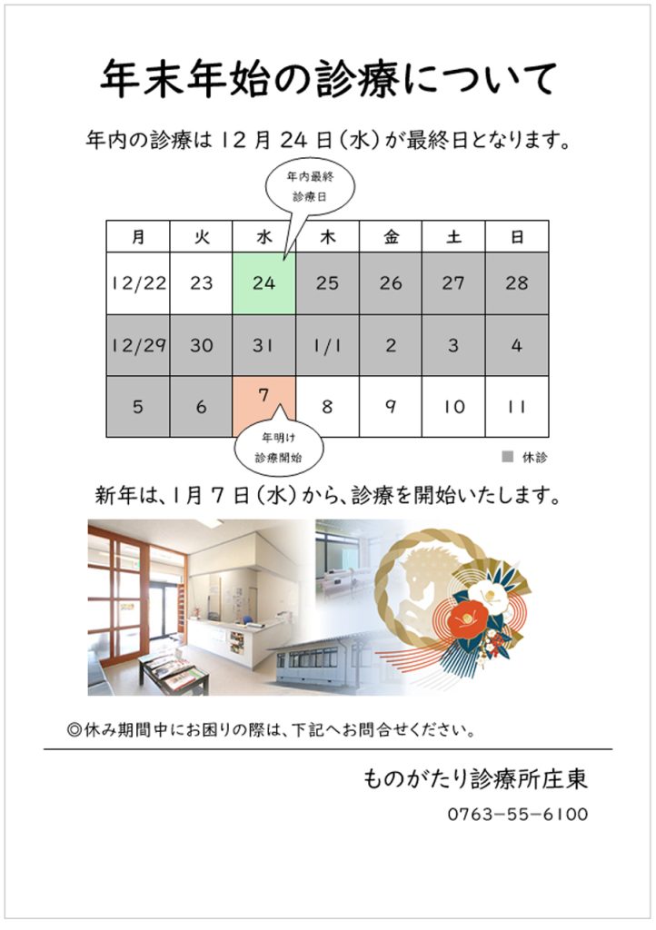 ものがたり診療所庄東をご利用いただき、誠にありがとうございます。