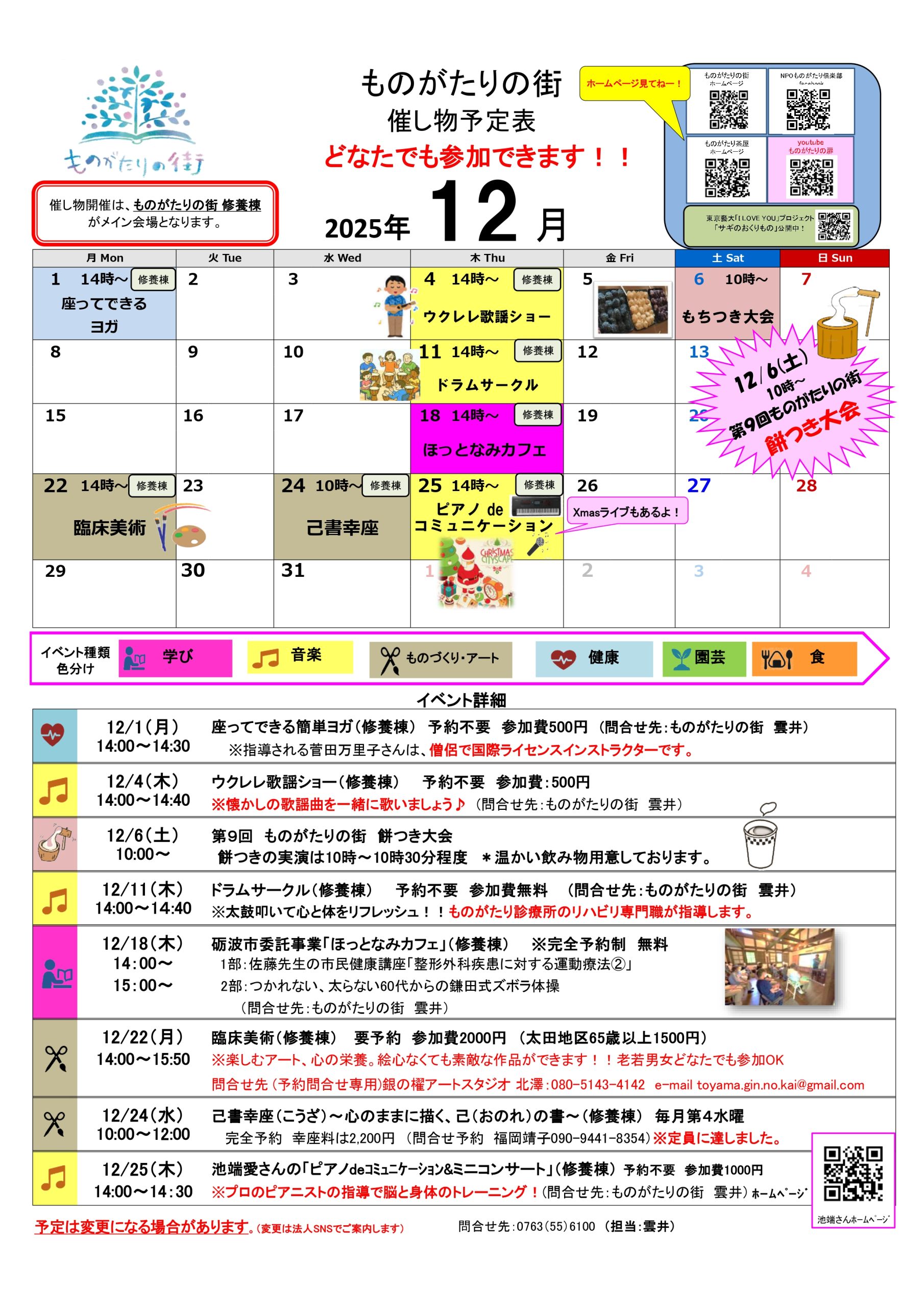 ※予定は変更になる場合があります。(変更は、ものがたりの街修養棟前及び法人SNSでご案内します)